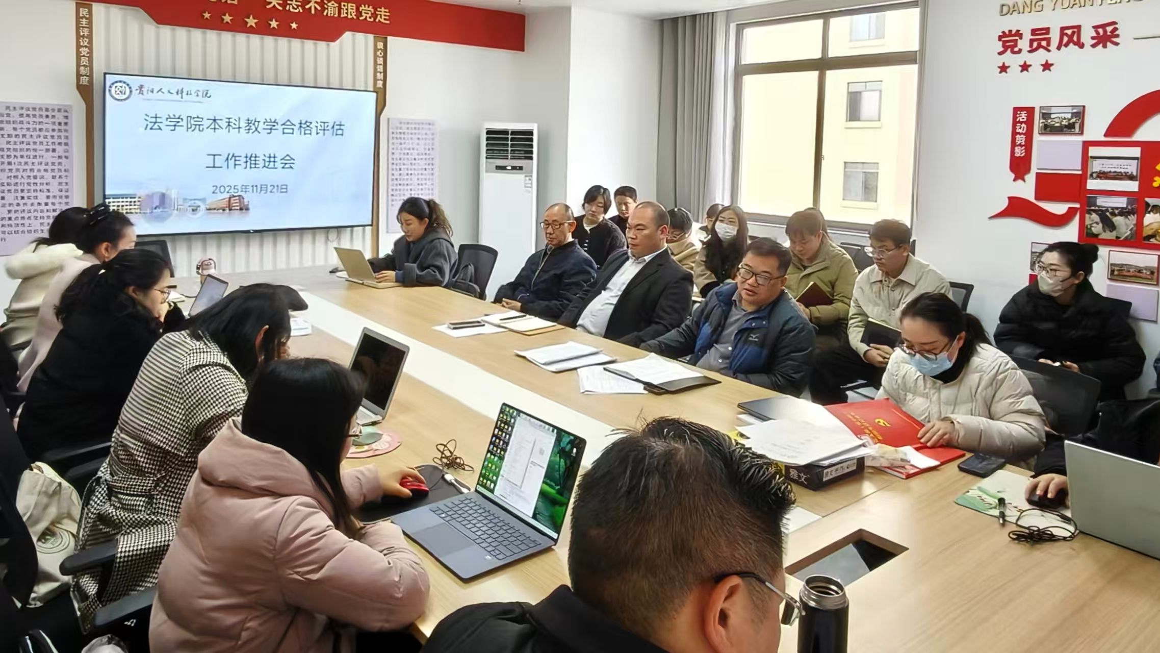 11月21日,伟德官网法学院在大学城校区召开本科教学合格评估工作推进会。法学院院长杨武松、党委书记张福高、党委副书记杨晶晶以及全体教师参加会议。会议围绕教学评估准备、教学质量改进、实践教学安排及师资队伍建设等核心议题进行了深入讨论和系统部署。