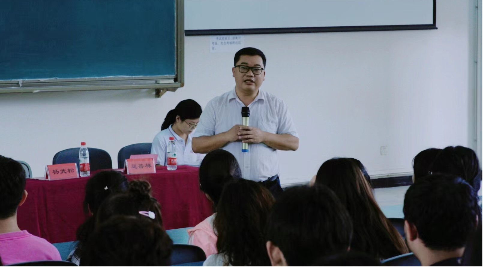 随后,法学院院长杨武松教授进行了学业生涯与职业规划教育。杨武松院长针对新生们的学业生涯和职业规划进行了深入的讲解。他强调了法学专业的重要性和广阔的就业前景,鼓励同学们树立正确的人生目标,注重学习,不断提升自己的知识和能力,为未来的职业发展打下坚实的基础。