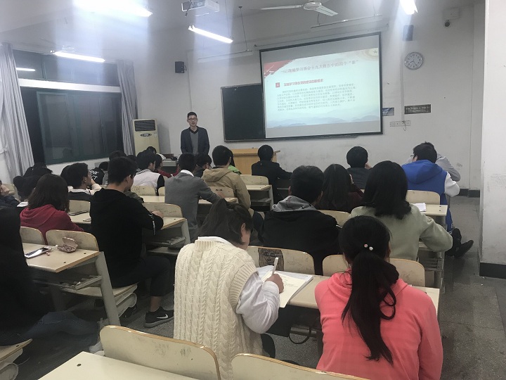 党的十九大于2017年10月18日至10月24日在北京胜利召开,为学习贯彻党的十九大精神,11月2日晚,粮食与食品工程系学生党支部组织举行了“学习贯彻党的十九大精神,争做新时代六有大学生”主题党课,全体学生党员、入党积极分子和各班级团支书参加。