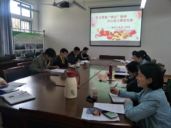粮工系党总支开展“学习贯彻两会精神 齐心协力聚焦发展”主题党日活动,党总支书记祝方清主持会议,全系教职工参加。