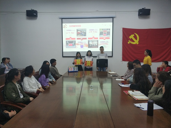 活动开始,参会党员、入党积极分子集体重温入党誓词、诵读党章,回顾了五四运动历史,并重点学习了习近平总书记关于五四运动和五四精神的重要讲话。为加强对五四运动和五四精神的了解和记忆,促进对五四精神的学习和传承,开展了知识竞答活动,各支代表队积极参与,激烈抢答,最终王信怡和杨玉荣同学夺得总分第一名。