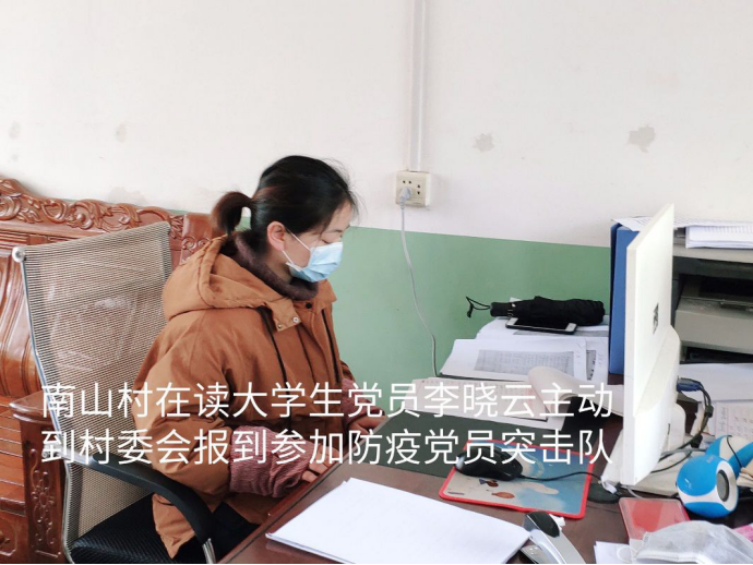 “一直很感谢国家对90后的照顾,现在是我该回报的时候了!”同样来自安检1601本班的李晓云作为早一批发展的老党员,见到村里多数人都自主参加乡镇人员出入防控志愿工作,得知家乡疫情防护需要帮手,义无反顾地投入其中。每天记录村里人的体温,同时参加党员防疫突击队,在村子里贴防疫横幅,每天守道路口,时常需要晚上巡逻检查打麻将扎堆聊天的情况。然而因长期早出晚归被家人发现,遭受到了姐妹们的不理解,认为她可能会因疫情无法控制影响到家庭,但李晓云同学表示,能够在非常时期挺身而出并不害怕,因为她的身后,亦有温暖的后盾。“其实我心里一开始是特别难受,以为家人不支持。但是我的爸爸是老党员,爸爸妈妈特别的支持我。所以我才有信心一直干下去。这一点我最开心的,真的是很感谢爸爸妈妈的理解与支持。并且每天回来我的妈妈都会烧好水让我洗头洗澡换衣服。湖北加油!中国加油!”
