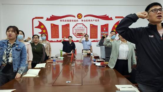 党员同志们诵读党章充分表达了对党章的尊崇和敬畏之心,高举紧握的拳头庄严宣誓,重温自己对党忠诚的誓言,通过宣誓,再次坚定了党员同志们对党的信仰。