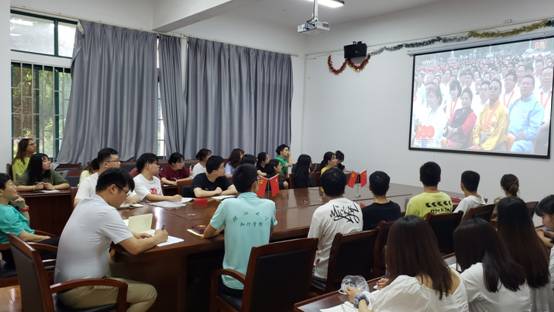 在知化楼一楼101会议室,座无虚席,学院领导班子成员、各教研室负责人、全院教职工党员、学生党员代表集体收看大会实况。还有部分师生自发在学生宿舍、食堂等场所通过电视、网络、广播多种方式收听收看大会实况,广大党员干部师生认真学习领会习近平总书记庆祝中国共产党成立100周年大会重要讲话精神,会场不时响起令人振奋的热烈掌声。在党总支祝方清书记的带领下,与会党员分别就建党100周年谈体会、话心声、献祝福、表决心。要继承和发扬党的光荣传统和优良作风,立足本职工作,在新时代全面建设社会主义现代化国家新征程中奋勇争先、建功立业,以优异成绩庆祝建党100周年。