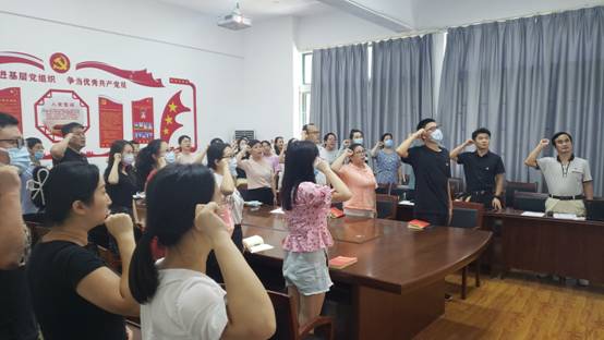 宣讲前,大家集中观看了习近平在庆祝中国共产党成立100周年大会上的讲话的视频。全体党员干部面向党旗,高举右拳重温入党誓词,神情庄重、声音铿锵。通过重温入党誓词,大家深深感受到党员的责任、使命、荣耀,不忘入党初心,决心要在今后的工作中,时刻以党员的标准严格要求自己,时刻以党员的先进性鞭策激励自己,发扬优良传统,坚定理想信念,牢记职责使命。