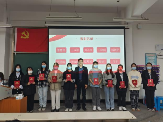 活动开始,大家先集体观看中国共产党国际形象网宣片《CPC》,共同回顾中国共产党自成立以来走过的路,认真体会党始终如一为人民服务的宗旨。活动中,对今年以来在学校疫情防控志愿服务、社区实践、公寓安全值班等工作中表现突出的同学进行了表彰,学院党总支书记祝方清、副书记冯书祥分别为获奖学生颁奖,为同学们树立了学习的榜样。第二党支部宣传委员吴杰雄向同学们介绍了为什么要加入中国共产党以及入党的要求、程序,并对第二党支部今年以来的工作进行了总结,分享历年来优秀学生党员的先进事迹。