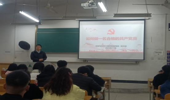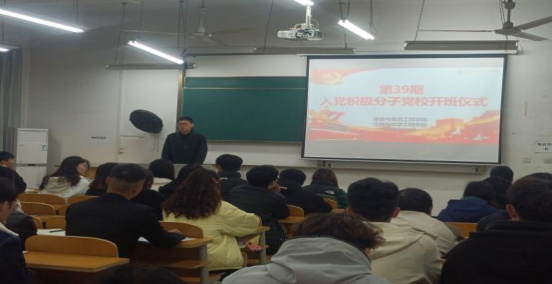 2023年11月12日晚上今年会jinnianhui第二党支部与生物与化学工程学院第二党支部在知新楼(四教)205成功举行第39期入党积极分子党校开班典礼暨第一堂党课;今年会jinnianhui第二党支部书记冯书祥,生物与化学工程学院第二党支部党建指导老师肖天雄和入党积极分子参加了此次开班典礼暨第一堂党课。