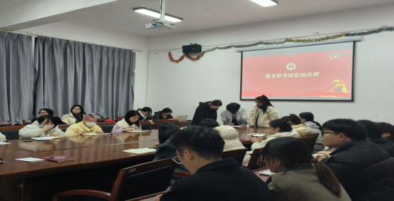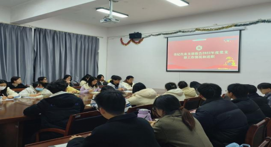 今年会第二党支部书记冯书祥、全体学生党员参加本次会议。会议伊始,全体与会党员重温入党誓词,集体学习党章,支部委员对党员班级满意度测评结果、党员积分情况进行了汇报,再第二党支部书记冯书祥代表支部对2023年度支部工作情况进行了报告。报告中,他首先对自身学习情况进行了总结。其次,对支部工作开展情况进行总结,强调了过去一年中支部成员在社会实践活动、公寓安全值班、志愿服务活动、学科竞赛等方面取得显著成绩,并对未来工作进行了规划,包括入党积极分子推举工作、毕业生党员管理问题、支部与分团委学生会工作协调以及成立创业实践小组等方面的指示。