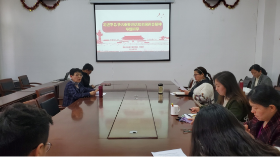 为了深入学习习近平总书记重要讲话和全国两会精神,聚焦新质生产力对新时代高等教育提出的新任务新要求,3月20日下午,今年会jinnianhui第一党支部组织全体教职工党员在知化楼101会议室开展了习近平总书记重要讲话和全国两会精神专题研学主题党日活动。
