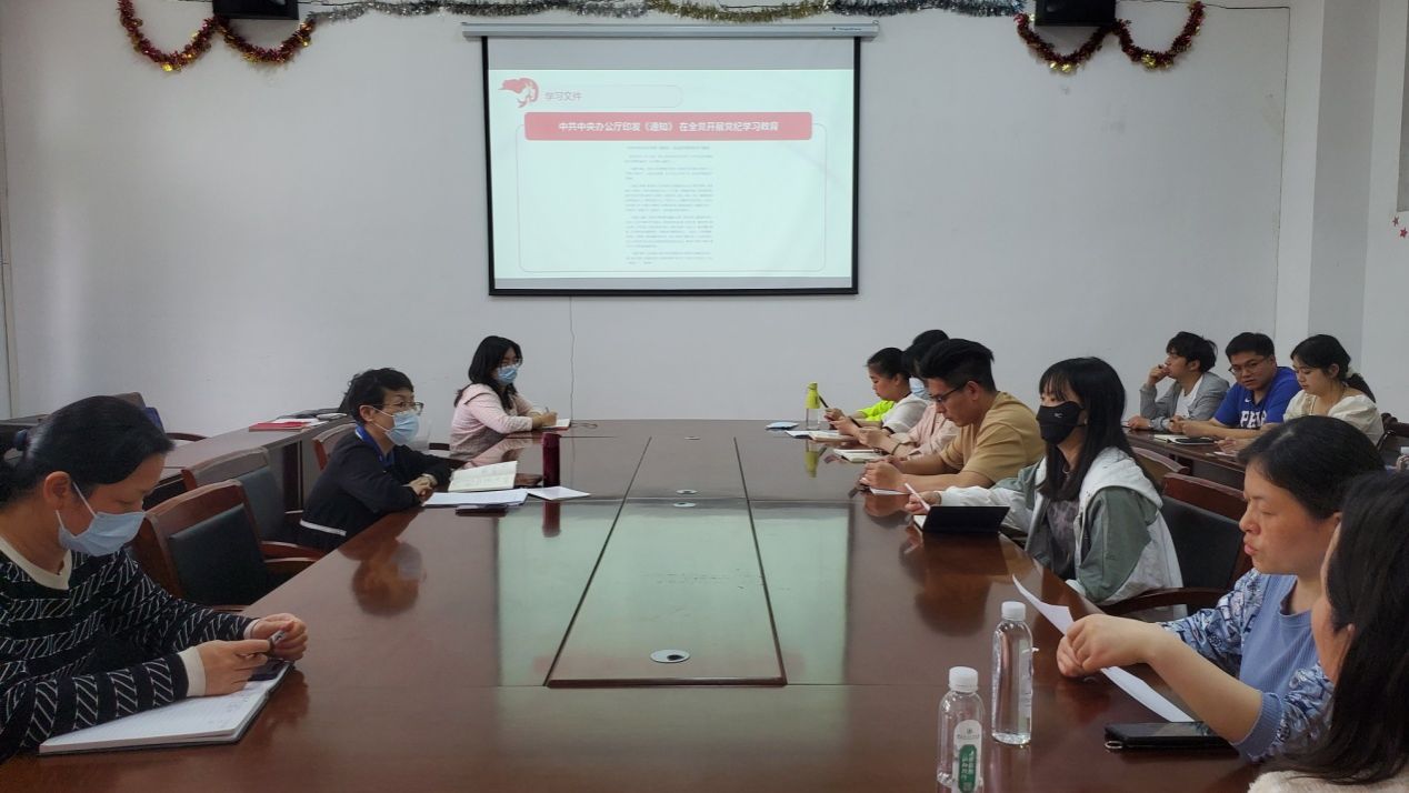 会议首先传达了学校党委有关党纪学习教育动员部署会的精神。祝书记指出党纪学习教育是以习近平同志为核心的党中央作出的重大决策部署,要深刻领会开展党纪学习教育的重要意义,准确把握目标要求,切实把思想和行动统一到党中央决策部署上来,组织党员原原本本、逐章逐条学习《中国共产党纪律处分条例》,做到学纪、知纪、明纪、守纪。