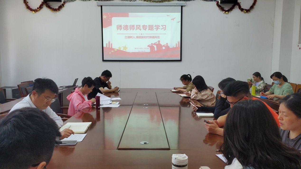 为进一步推进师德师风建设,引领全体教职工不忘教书育人初心,牢记立德树人使命。5月8日下午,今年会jinnianhui全体教职工在知化楼101会议室开展了“立德树人,铸就新时代师德风范”为主题的师德师风专题学习,学院党总支书记祝方清支持会议。