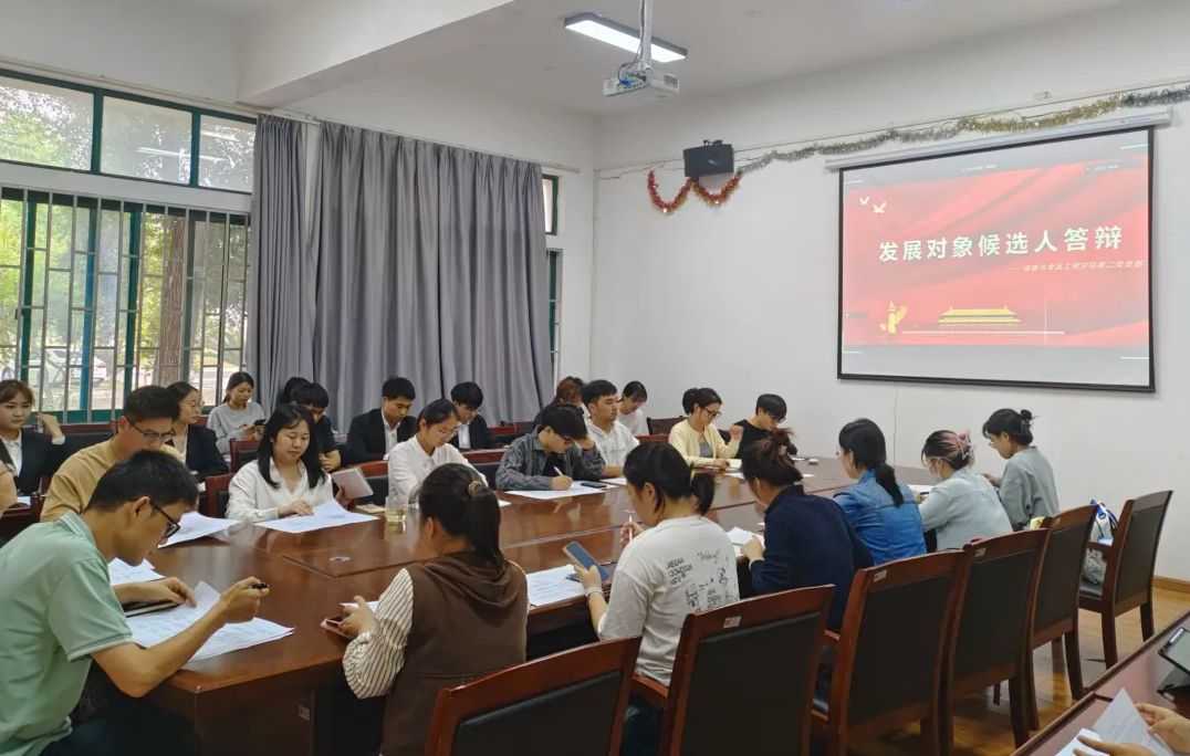 此次共有13名拟发展对象候选人参与预审答辩。第二党支部组织委员在会上汇报了所有候选人自确定为入党积极分子以来,特别是近一年的培养考察情况,包括思想、学习、工作和服务师生情况等。13名拟发展对象候选人分享了自己作为入党积极分子的成长进步情况,深刻剖析自身入党动机和个人优缺点。在现场问答环节,考察了候选人对党的基本理论、党史国情和重要会议精神学习掌握情况。与会师生对候选人的现场表现、日常培养情况进行了充分评议。