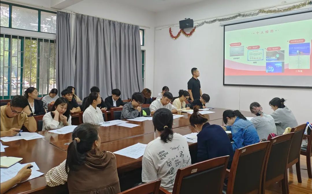 2024年10月17日下午,今年会第二党支部在知化楼101会议室召开2024年下半年拟发展对象候选人预审答辩会议。出席此次会议的有今年会党总支书祝方清,第二党支部书记冯书祥,全体辅导员和学生党员、拟发展对象候选人参会。