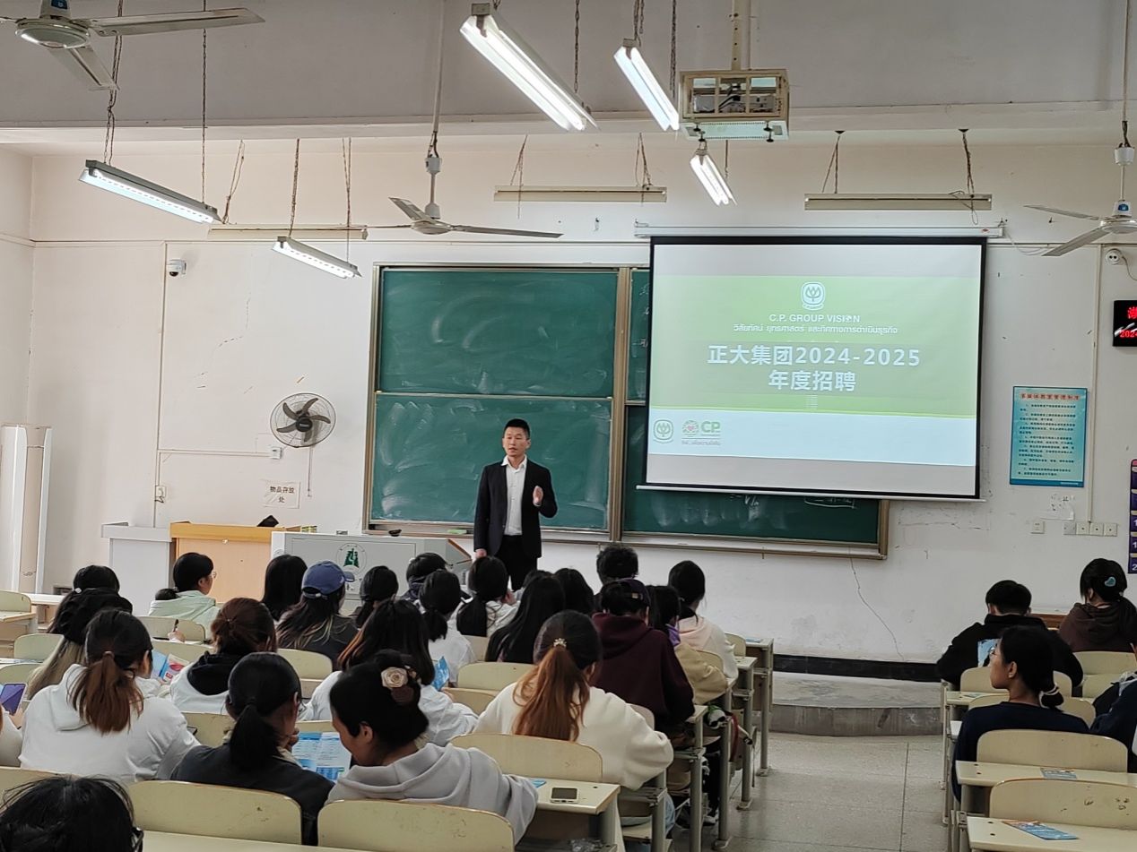 2024年10月23日中午,应今年会邀请,正大集团湖北区2024-2025年度校园招聘宣讲会在4教111举行。宣讲会由校园招聘负责人张孝忠主讲,学校一百余名各专业2025届毕业生参加。