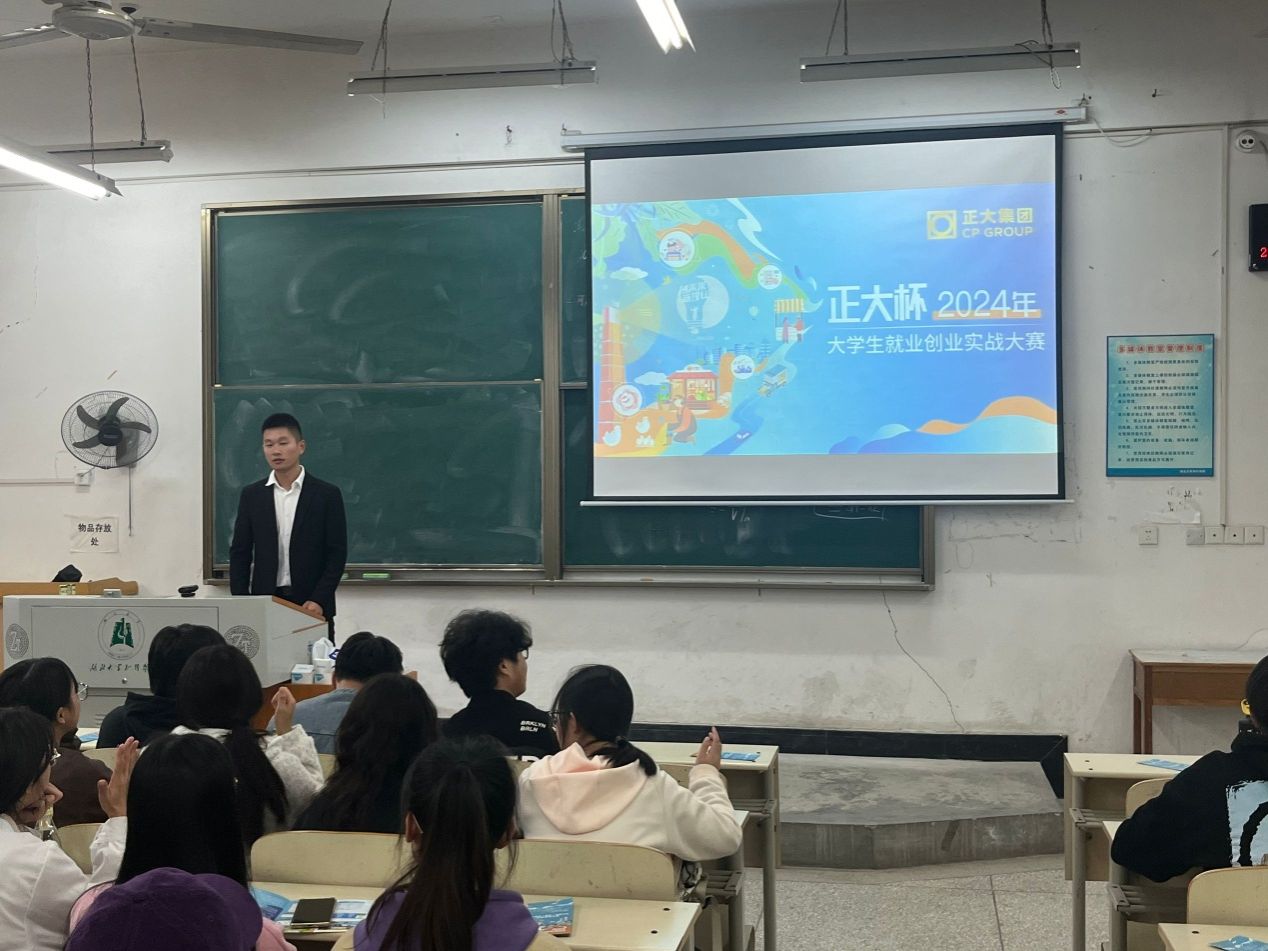 此外,张孝忠经理还向大家介绍了正在举办的“正大杯”2024年全球大学生就业创业实战大赛,鼓励同学们积极报名参加,结合自己的专业知识,挑战和展现自我风采。 (审稿:祝方清)
