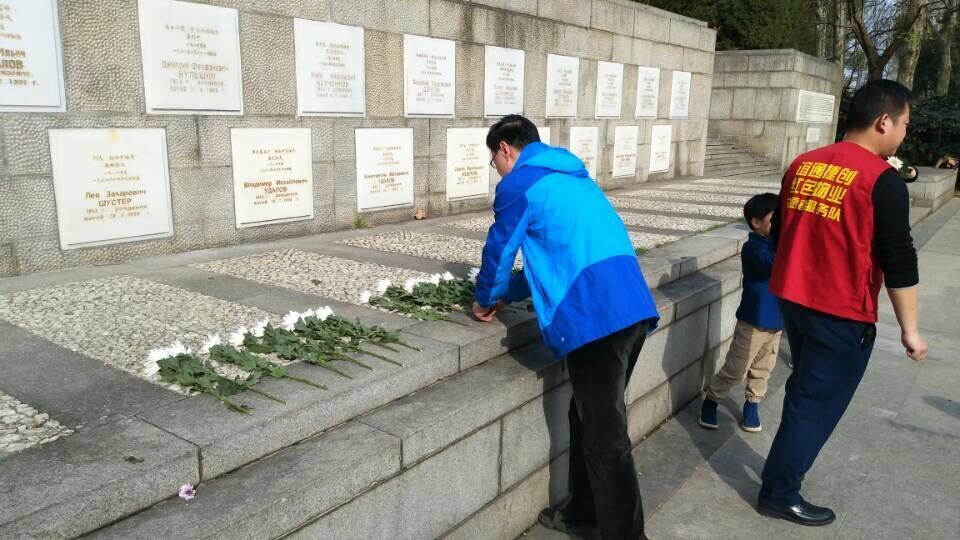 3月24日安检1701B班的志愿者们前往三阳路的太平社区进行志愿者服务。有幸在社区相关负责人的帮助下,一起前往解放公园进行烈士纪念活动,在清明节临近之时,缅怀先烈、为长眠在地下的苏军志愿军们献上一束花。