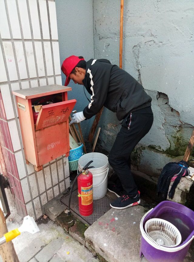3月21日食工1701班的志愿者们前往五福街道的五福社区进行志愿者服务。在社区相关负责人的带领下,大家有序地进行志愿者服务。志愿者们在楼道各个角落铲除“牛皮藓”,扶倒地自行车,清理楼道间的垃圾。