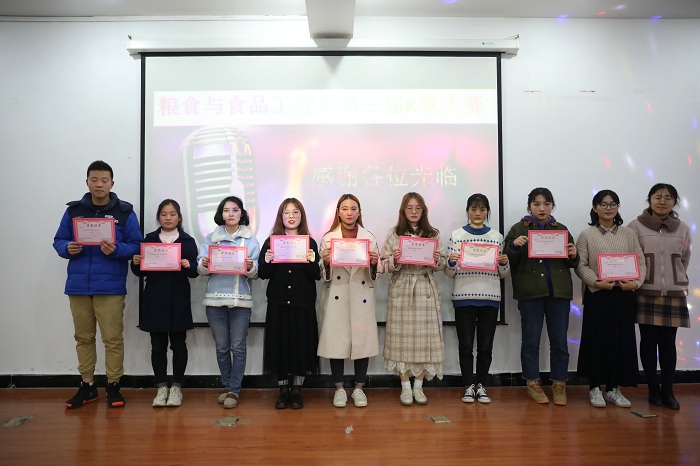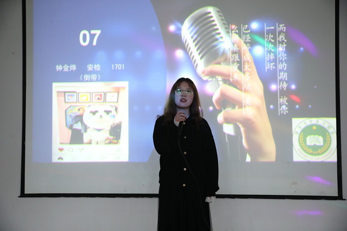 2018年12月19日晚,我系K歌大赛决赛在报告厅302举行。音符在跳动,歌声在蔓延,经过比赛,来自食检1701班的陈靖文获得第一名。本次K歌大赛活动的举办,为学生提供了一个发挥才能、展现自我的舞台,不仅丰富了同学们的课余文化生活,也提高了学生的自信心,促进了学生的个性发展。