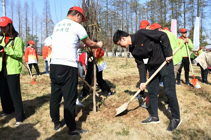 2019年3月12日是全国第四十一个植树节,为响应习近平总书记“绿水青山就是金山银山”的号召,培养学生“爱校、美校、荣校”、“爱林、护林、造林”的环保意识,3月12日上午10时,校团委组织开展“师生添抹绿,春意满校园”义务植树活动,学校领导和各院系青年志愿者代表参与本次义务植树活动。今年会jinnianhui师生积极参与,分工合作,培土浇水,互帮互助,一起种下红枫树苗。“绿满校园怡人心,花开遍地笑常存”,通过师生共同植树活动,既提高了同学们的生态保护意识,增进了师生感情,也引导同学们热爱校园、热爱劳动,营造师生共同参与校园建设的良好氛围。