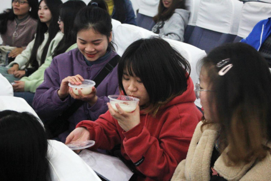 在讲座结束之前孙美玲老师为同学们准备了自酿的米酒,风味黑啤,中国特色鸡尾酒,芦荟保健酒。同学们一一品尝,相信同学们对酒又有了新的了解,对酒文化产生了新的感触。通过这次讲座,希望同学们能够更多地去了解酒文化,去发扬传承的酒文化,让更多的人能了解到的酒文化背后的传统民间酒俗,以及酒文化在现代工艺中的传承与发展。