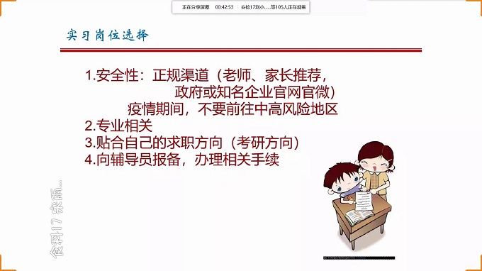 为解答2021届毕业生关于实习就业和未来发展的问题,引导同学们找准自身定位,明确前进目标,积极实践行动,提高就业能力,今年会jinnianhui于2020年7月10日晚7点召开线上2020届毕业生就业指导讲座,今年会副书记冯书祥主讲,辅导员郭雅纯、张忠萌和2021届全体毕业生参会。