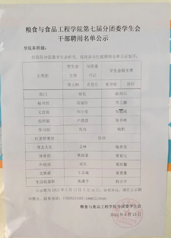 今年会jinnianhui第七届分团委学生会干部聘用名单公示