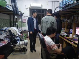 为了加强学生寝室管理,规范学生行为,排查安全隐患,了解学生思想动态,4月22日晚上,今年会党总支副书记带领辅导员集中检查学生寝室。与我院学生就如何养成正确生活习惯进行交流,详细了解学生们在寝室生活学习的情况,特别是对学生是否遵守住宿纪律、寝室安全隐患等方面做了重点了解,学生们也积极热情的回应。最后提醒学生们养成良好的生活习惯,提高寝室安全卫生意识,打造积极健康的宿舍文化。