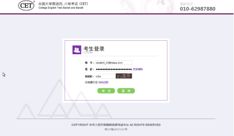报名网址:自行登录http://cet.etest.net.cn网站(全国大学英语四、六级考试CET)