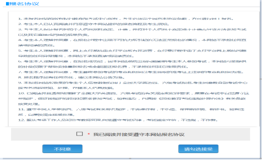 报名协议页面,勾选同意