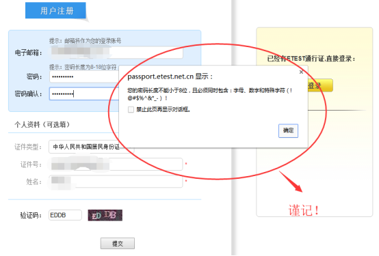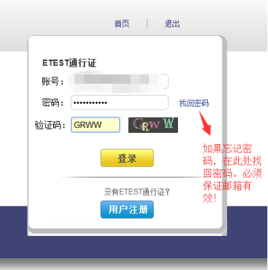 注册完成后,用上述注册的账号登录平台(地址:http://passport.etest.net.cn),修改个人资料及密码。