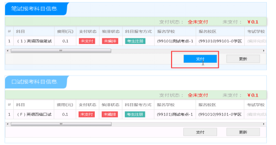 考生口试报名缴费的操作请参照上述笔试报名缴费的操作进行。