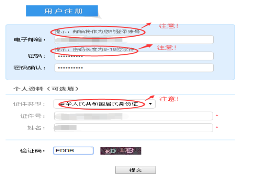 报名流程: 1、注册(已注册的考生请勿重复注册)。进入网站后,点击“注册新用户”按照页面各栏目完成用户注册(电子邮箱为本人QQ邮箱)。