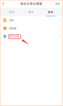 在课程页面,点击【更多】—【学习记录】,可以清晰地看到学习的进度和课程各环节的参与度。【考核标准】处可以查看当前得分。