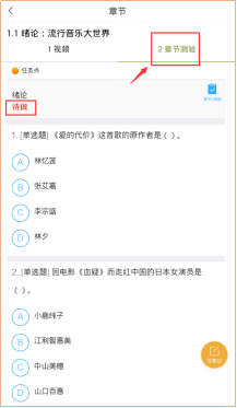 1.完成视频和作业任务点。可以在【章节】看到课程内容,点击进入,便可进行学习。每一章节都包含有视频和测验,完成视频学习后,点击“章节测验”,完成习题。(平时作业也算作成绩的一部分。未做的会显示“待做:如下图所示。)
