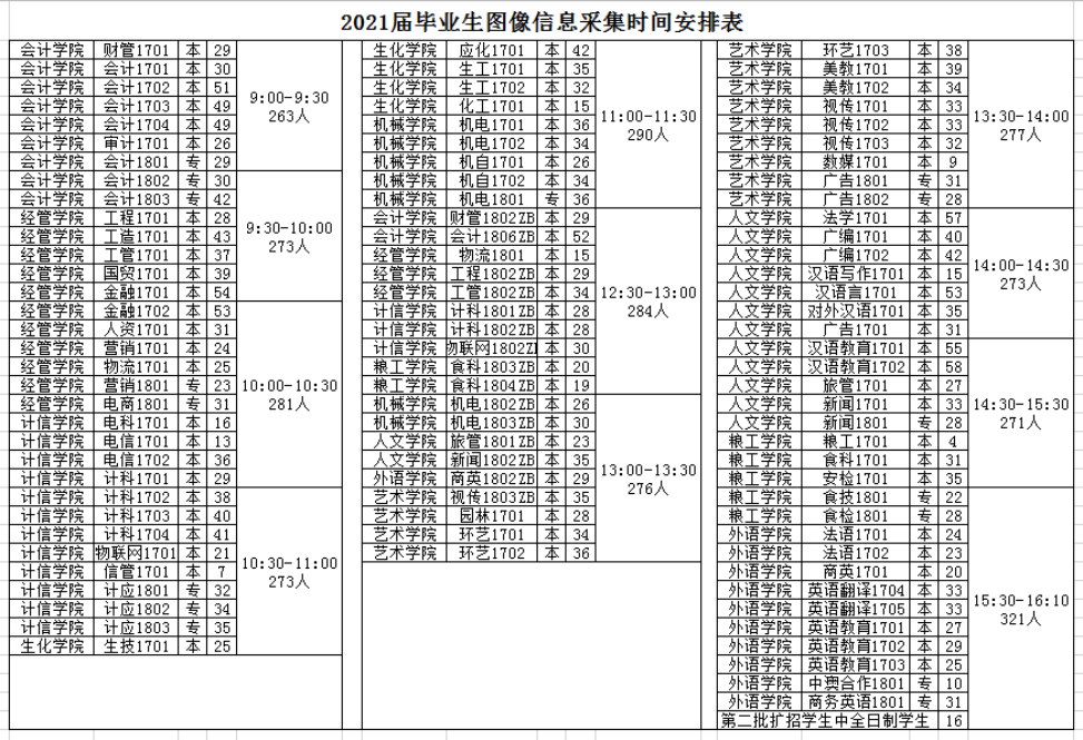 学院具体时间安排见《2021届毕业生图像信息采集时间安排表》。
