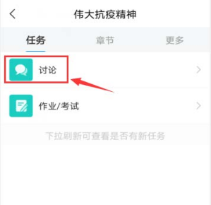 3.讨论。同学在学习过程中可以直接点击课程页的【任务】-【讨论】进行发帖与同学交流(如下图)。