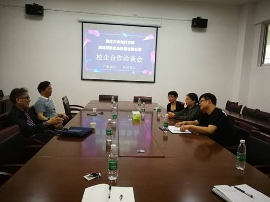5月17日,湖北阿帆食品股份有限公司董事长胡晓军来我院进行校企合作洽谈,刘齐院长主持了会议,祝方清书记和杨登想教授等参与了会谈。
