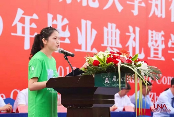 我院王倩同学作为代表在学校2019届毕业生毕业典礼暨学位授予仪式上发言