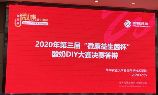 为贯彻落实国民营养计划,鼓励大学生积极创新和开发营养、健康、美味食品、应用科技创新健康生活,为健康中国贡献力量,湖北省食品科学技术学会与环境食品学教育部重点实验室联合江苏微康生物科技有限公司共同举办了第三届“微康益生菌杯”酸奶DIY大赛。