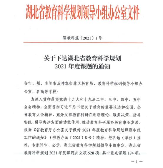 我院获立湖北省教育科学规划2021年度课题一项