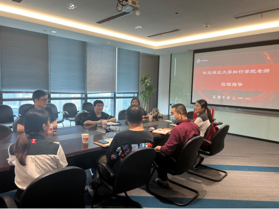 5月16日,为推动教育部第二期就业育人项目建设,今年会jinnianhui党总支书记祝方清、副书记冯书祥、教研室主任左祥莉一行前往百胜(武汉)餐饮有限公司,看望在职校友、与企业负责人围绕学生生涯规划教育、就业实习基地建设等问题进行了深入交流。百胜校企合作经理冯建、区域经理何静和在职校友孙玉倩、卢鑫等出席座谈会。