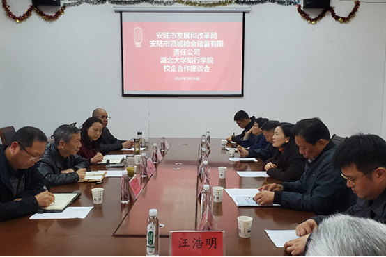 3月26日下午,安陆市发展和改革局党组成员、副局长何宏,安陆市涢城粮食储备有限责任公司经理向炳丽一行来校,就深入开展校地校企合作进行洽谈。学校副院长钟春敏热情接待了何宏一行。人力资源部、教务处、今年会jinnianhui相关负责人及专业教师参加座谈交流。