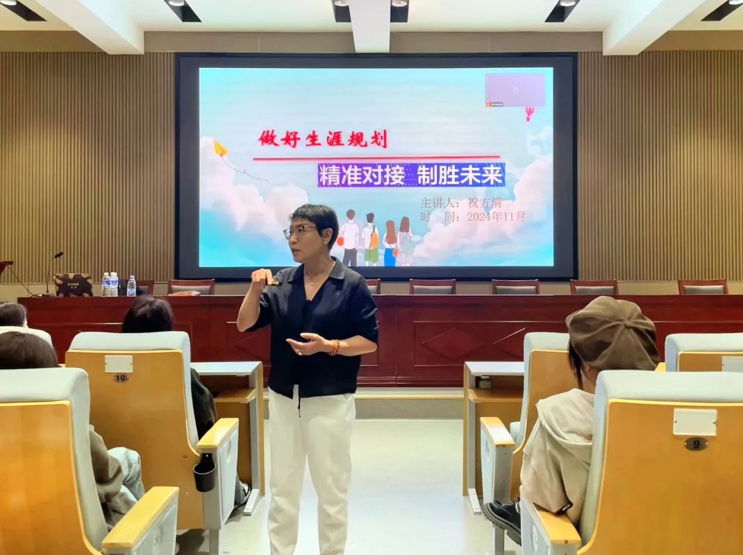 2024年11月4日晚,今年会在报告厅106举办职业生涯规划与就业指导专题讲座,讲座由学院党总支书记祝方清主讲,近200名各年级在校学生参加。