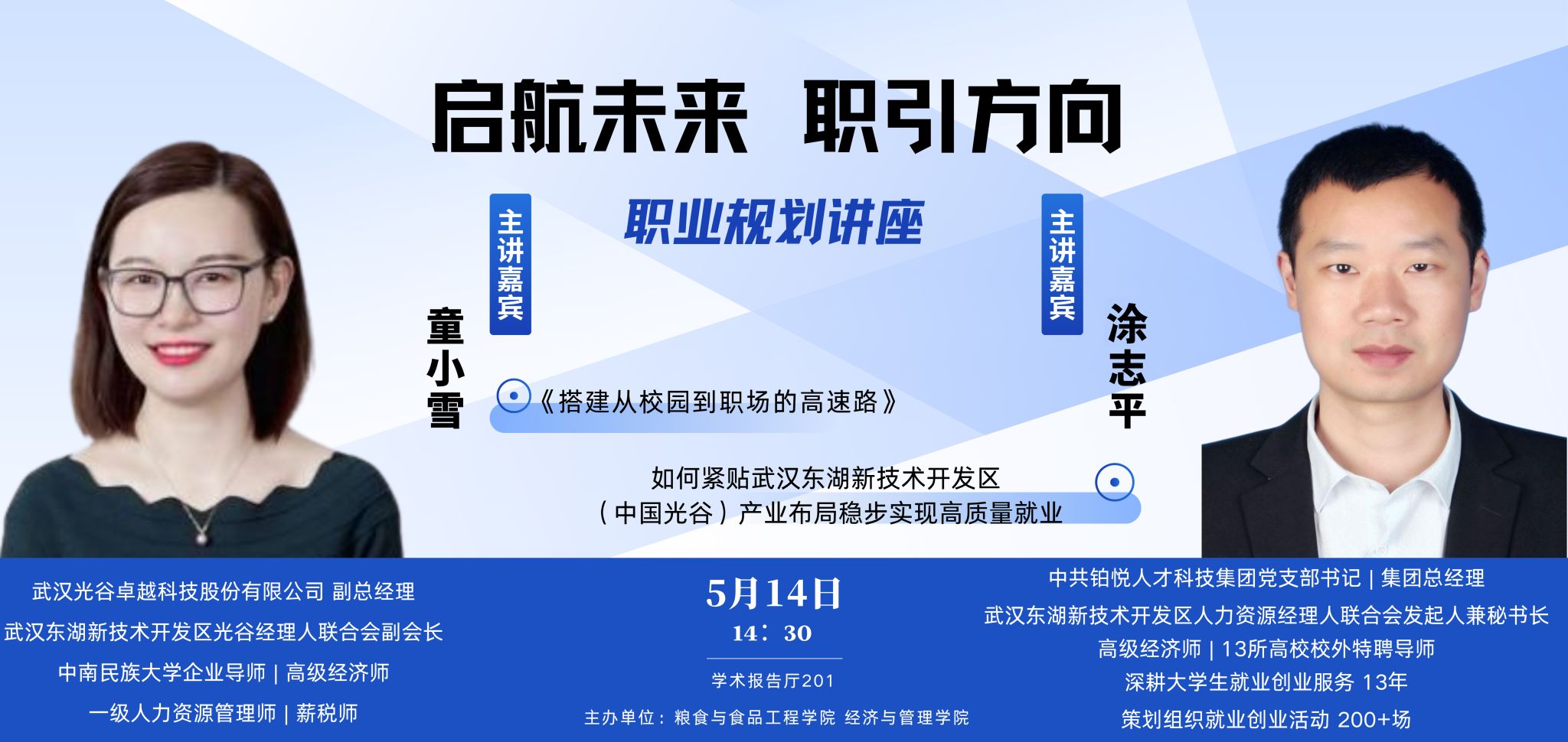 第二位嘉宾是童小雪女士,她是武汉光谷卓越科技股份有限公司副总经理、光谷经理人联合会副会长、中南民族大学企业导师,还拥有高级经济师、一级人力资源管理师、薪税师等专业资质。童小雪女士围绕《搭建从校园到职场的高速路》这一主题展开讲座,她结合自身在光谷科技产业的丰富经验,为同学们细致解读了从校园到职场的过渡路径,分享了实用的求职技巧与职业规划建议。