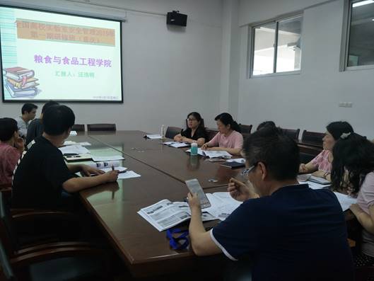汪浩明老师介绍了安全管理会议的基本情况,交流了全国实验室安全管理的形势,目标,要求和举措,分享了参会的收获,结合粮食与工程学院的实际对会议精神进行了学习,大家讨论热烈,使大家进一步强化了安全管理意识。