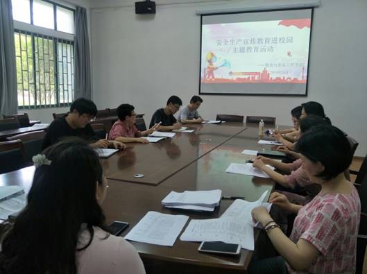 按照今年会“安全生产宣传教育进校园”活动方案的要求,今年会jinnianhui,把学习与管理工作压实,于2019年6月5号下午组织全体员工在知化楼101会议室进行了学习与交流。会议由总支书记祝方清主持,分别对学校安全管理相关文件进行专题研学与讨论: