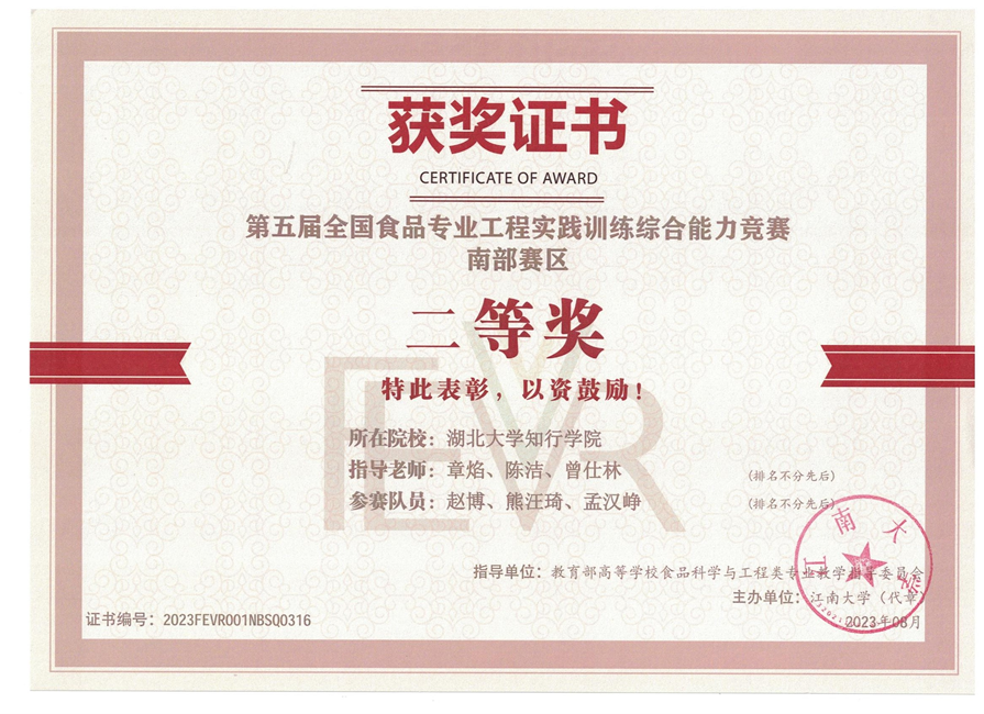 学生参加第五届全国大学生食品工程虚拟仿真大赛获南部赛区二等奖