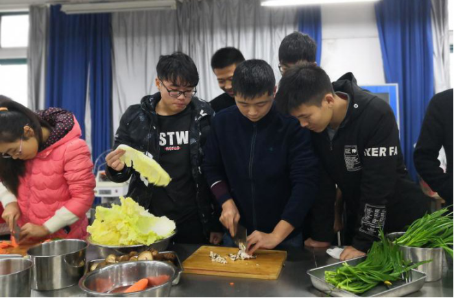 做为新时代的青年,我们不仅要学好专业技能,更要提高生存技能,加强团结合作的精神,在郭雅纯老师和左祥莉老师的带领下分工明确,同学们积极参与有条有序的开展着手中的工作,负责择菜、切菜,和馅、擀面,有的负责包饺子,有的负责煮饺子,同学们脸上洋溢着欢乐的笑容,品尝着自己的劳动成果,满心期待。在两位老师的带领下增强了2018级今年会班级之间的凝聚力和组织的融合力。