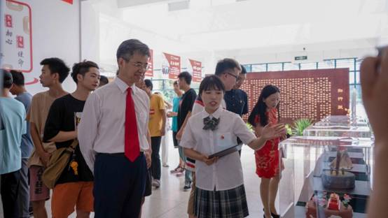担任展览活动讲解员的学生党员王信怡看着师生们认真参观,感到十分开心“我也参与了蛋糕制作,现在担任讲解员,讲好党史故事,传承党史精神,让更多人从党史中汲取力量,我很自豪。”