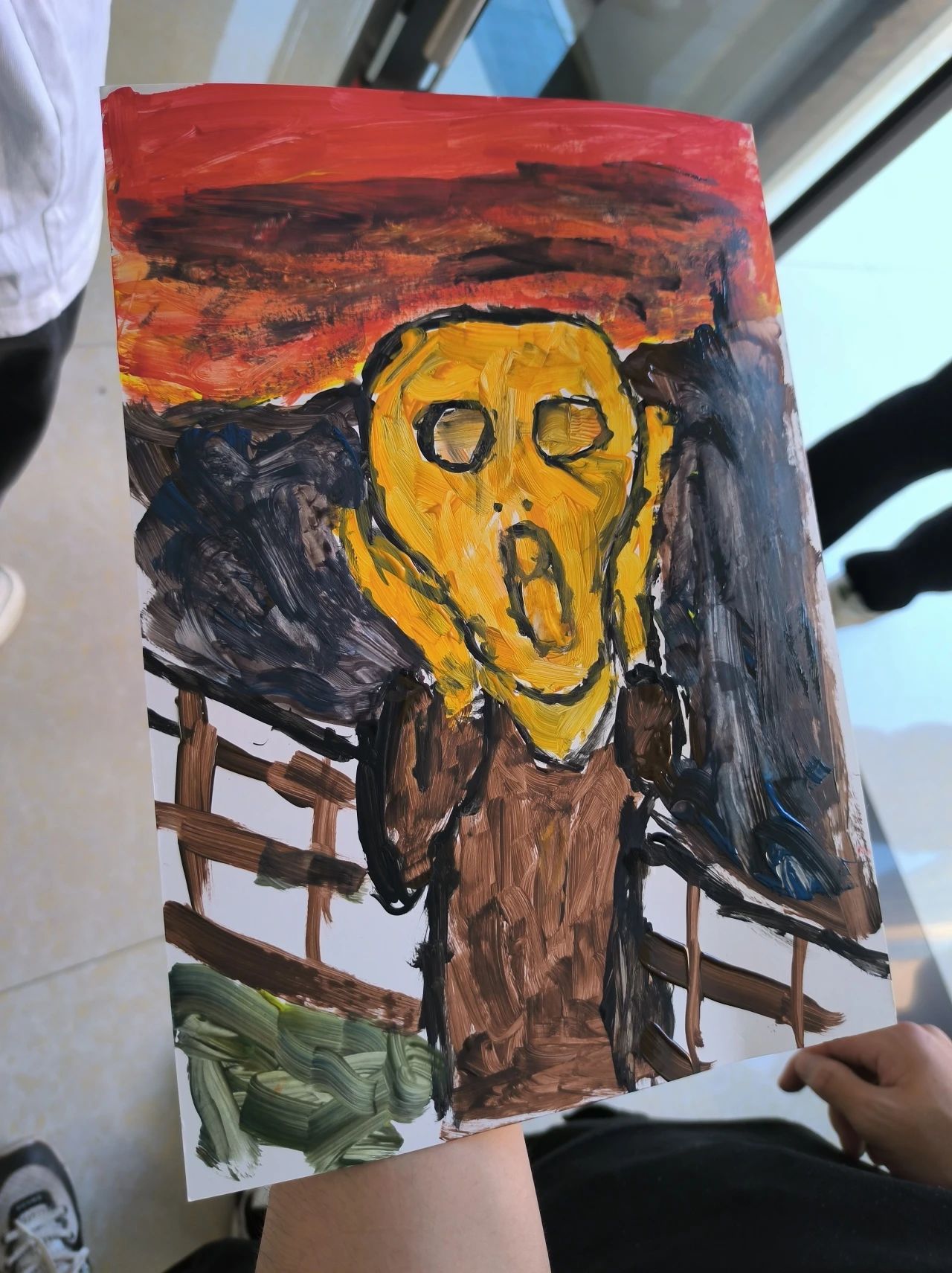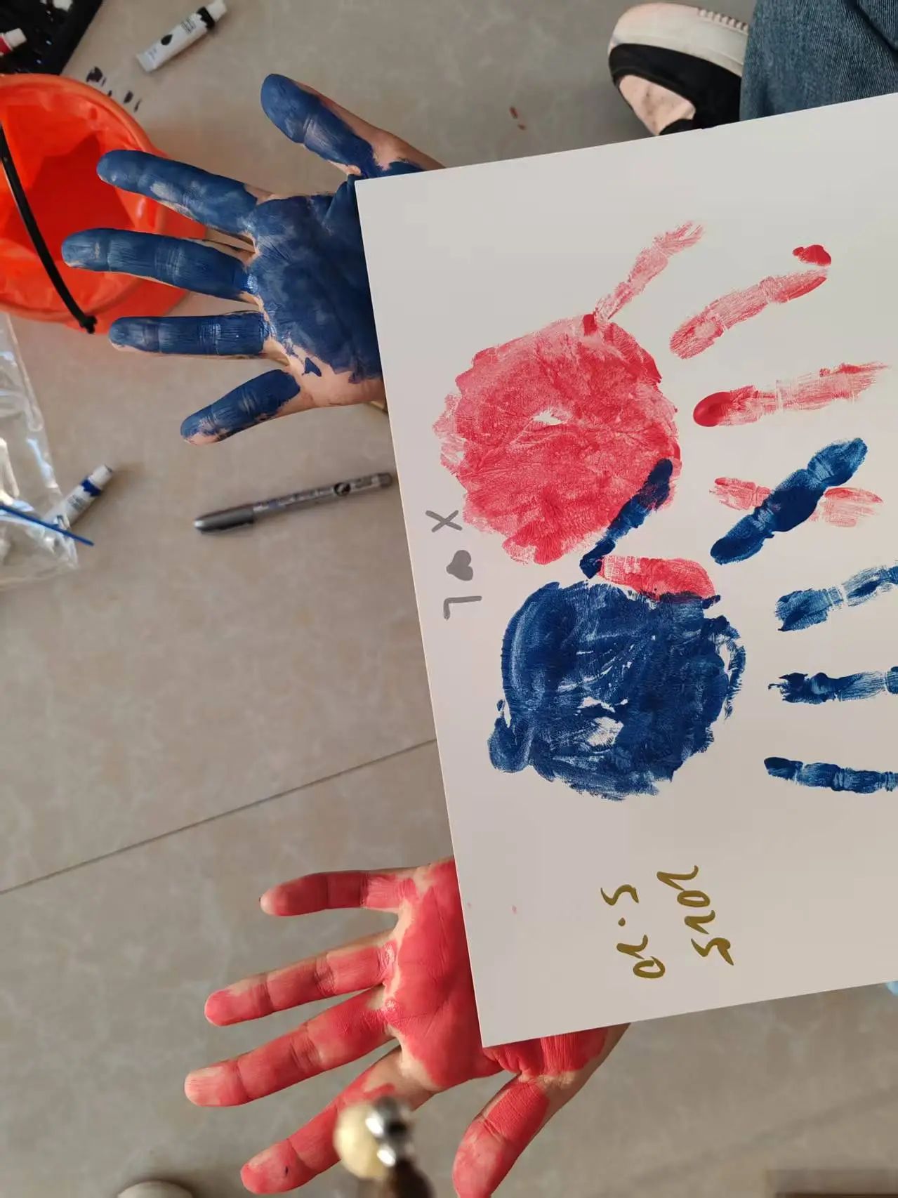 他们或使用颜料印下自己掌印,通过色彩斑斓的掌印传递出了同学们的内心的丰富多彩;或使用颜料绘出了图画,展现了同学们别具一格的创作能力;或使用颜料挥洒笔墨,留下了同学们对过去、对现在、对未来的人生寄语。